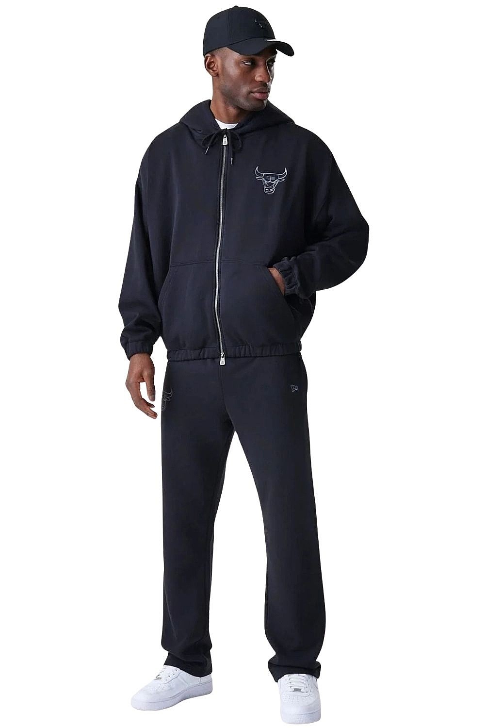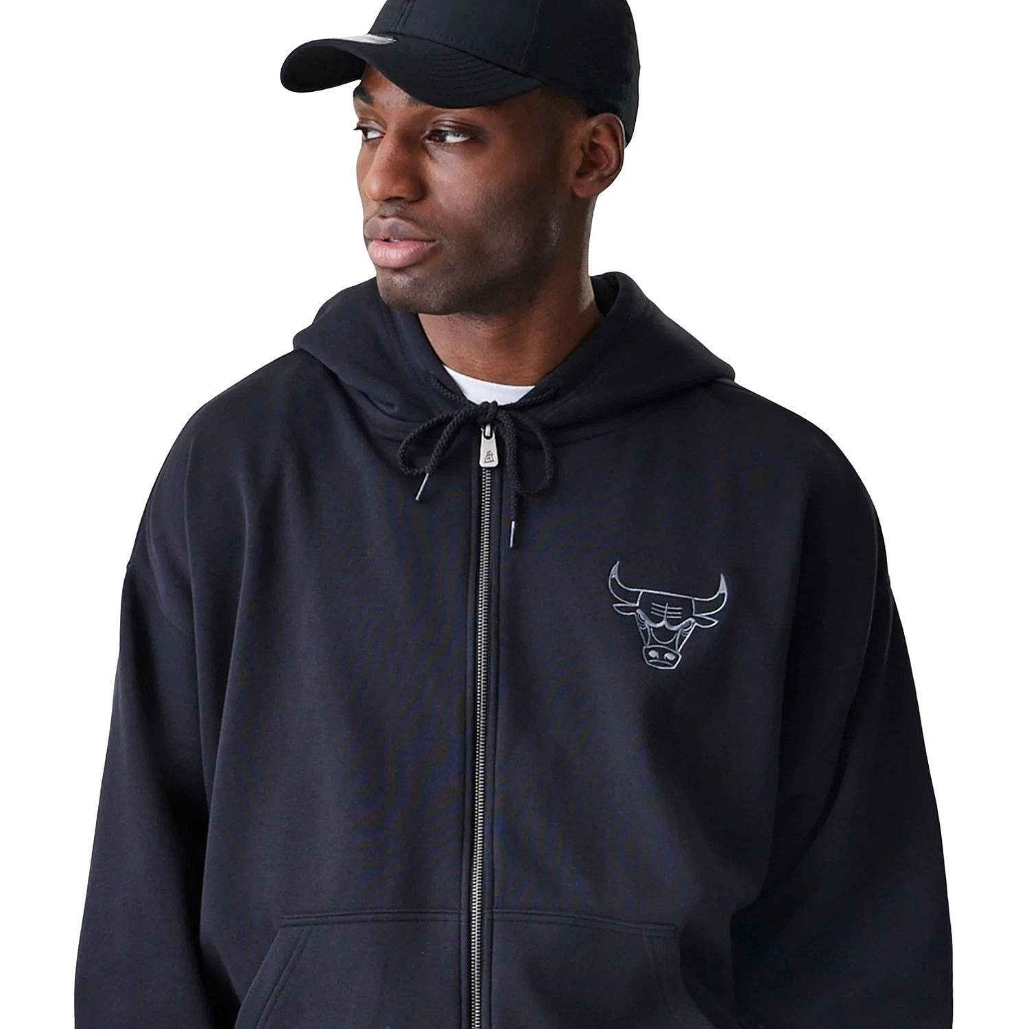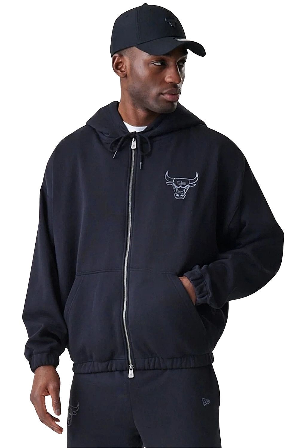 Bluza New Era Linear Oversized Hoodie Zip NBA Chicago Bulls - Black