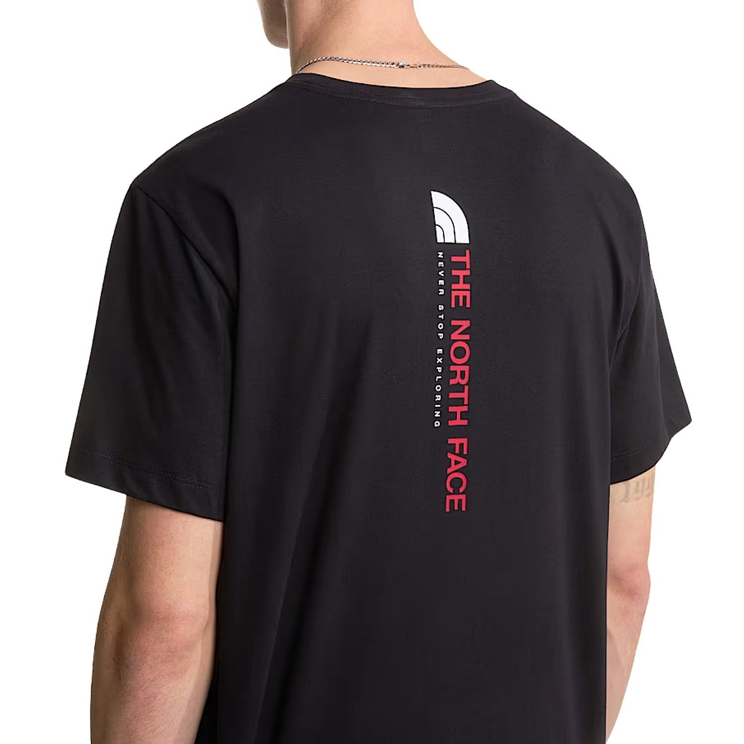 Męska koszulka The North Face Vertical Regular – odkrywaj nowe horyzonty w komfortowej, miękkiej i oddychającej koszulce. Krótkie rękawy i nadruk na bazie wody na plecach tej niezawodnej warstwy sprawiają, że będziesz po nią sięgać wielokrotnie.